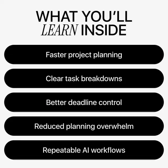 This ebook is ideal for freelancers, entrepreneurs, project managers, students, and creatives who want a smarter way to plan projects. No technical background is required. If you’ve ever felt stuck organizing tasks or unsure how to use AI effectively, this guide was made for you.