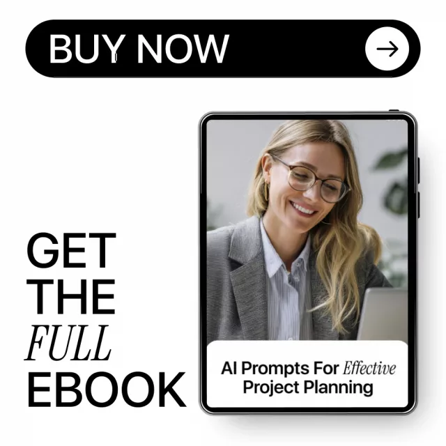 Unlike generic AI guides, this ebook focuses specifically on ai prompts for project planning with real-world examples, prompt tips, and workflows you can apply immediately. It balances AI efficiency with human oversight, helping you stay in control while working smarter.