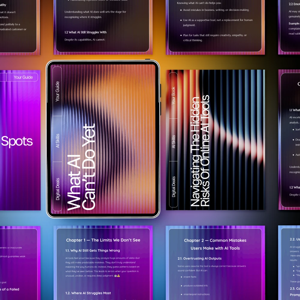 This bundle is built around understanding limitations and risks of ai tools in a way that feels approachable, not technical or overwhelming. It’s designed for everyday users—not engineers—who want to stay informed while still enjoying the benefits of AI.