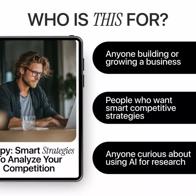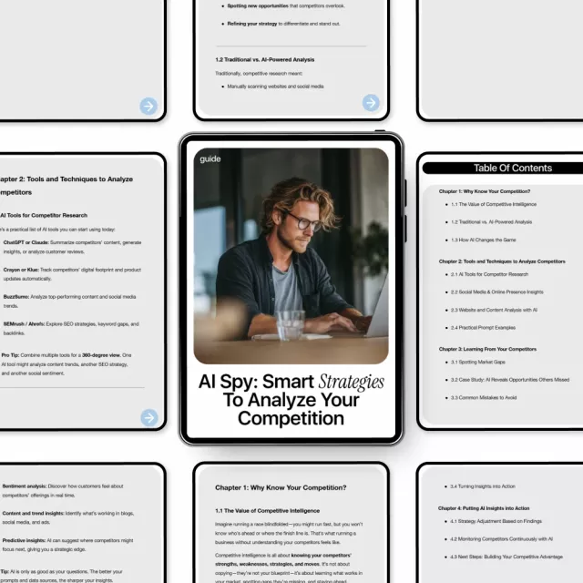Unlike generic business eBooks, AI Spy: Smart Strategies to Analyze Your Competition focuses on practical AI applications you can use right now. It blends strategy, real examples, and ready-to-use prompts, making it easy to apply—even if you are new to AI.