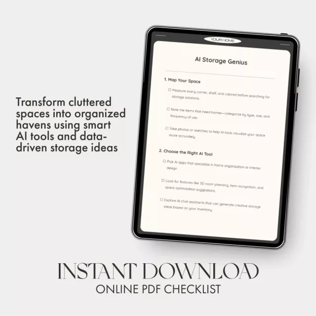 Say goodbye to clutter and hello to intelligent organization with AI Storage Genius — your ultimate digital checklist for mastering how to use AI to suggest storage solutions. Whether you’re tackling a messy kitchen, a cramped office, or an overflowing closet, this downloadable guide walks you step-by-step through a smarter way to declutter, design, and optimize every inch of your home using artificial intelligence tools. Perfect for DIY decorators, busy parents, or anyone ready to create a functional, beautiful space effortlessly.