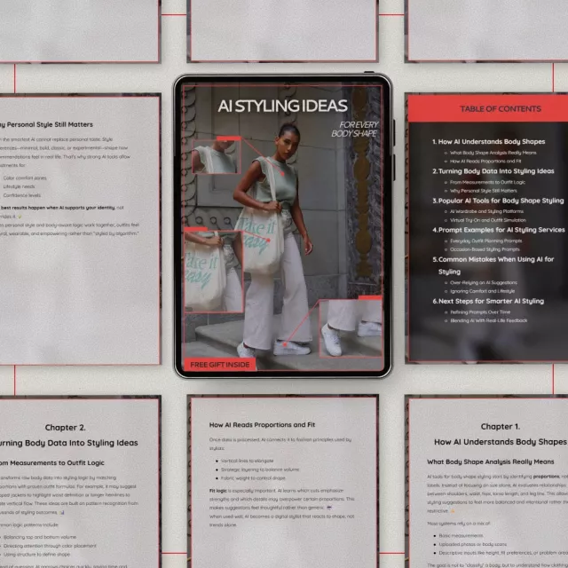 Discover a smarter, more confident way to dress with AI Styling Ideas for Every Body Shape, a practical and easy-to-follow digital guide designed to help you use artificial intelligence to enhance your personal style. This downloadable resource breaks down how AI analyzes body proportions, suggests outfits, and supports better wardrobe decisions—without replacing your individuality. Whether you’re experimenting with AI styling tools for the first time or refining how you use them, this guide helps you turn data into outfits that actually feel like you.