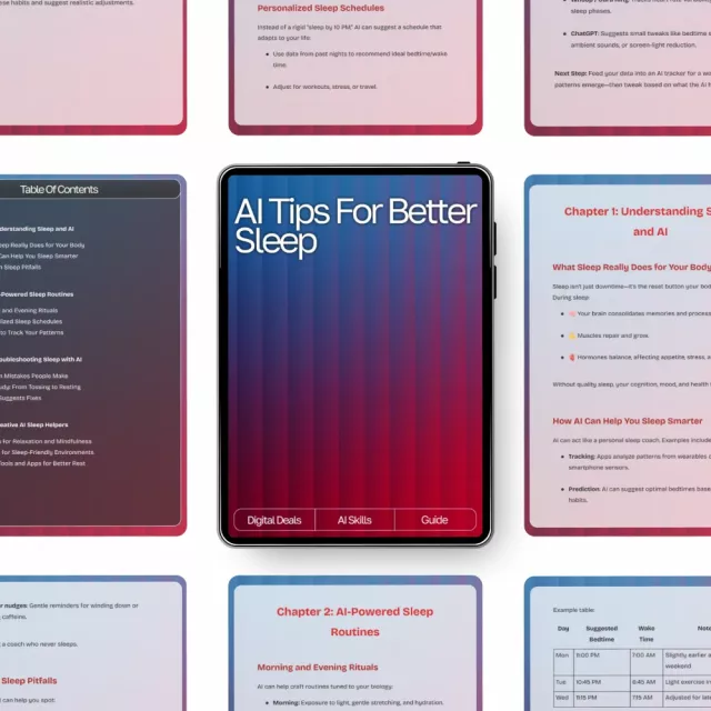 Transform the way you rest with the AI Tips for Better Sleep guide—a practical, easy-to-follow digital resource designed to help you understand your sleep patterns and improve them using modern AI tools. Whether you struggle with falling asleep, staying asleep, or simply want deeper, more restorative rest, this guide gives you clear, human-friendly insights and actionable steps. Packed with science-backed explanations, step-by-step routines, and ai suggestions for sleep hygiene, this downloadable guide makes improving your nights easier than ever.