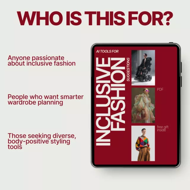 Ready to take your wardrobe to the next level? Download your copy of AI Tools for Inclusive Fashion Suggestions today and start creating inclusive, diverse, and personalized outfits that reflect your unique style. Whether you’re styling yourself or your clients, this guide offers everything you need to make smarter fashion choices using AI. Don’t miss out on the future of fashion—get your guide now!
