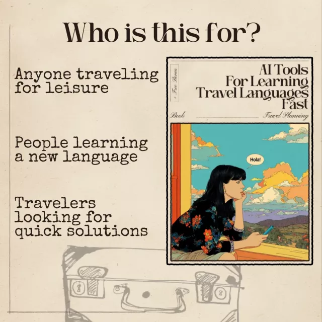 This eBook is perfect for travelers who want to learn a language quickly and efficiently using the power of AI. Whether you’re a solo traveler looking to engage more with locals, a family planning a vacation abroad, or a business professional needing quick language skills, this guide has something for everyone. No prior language experience needed—just an eagerness to learn!