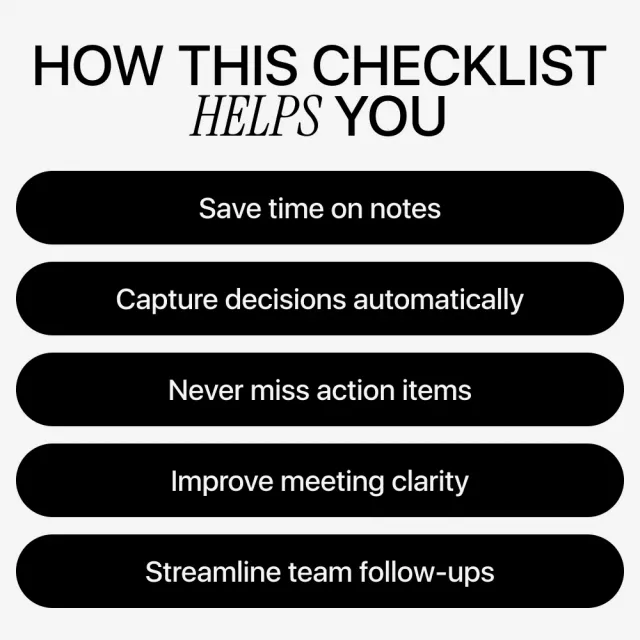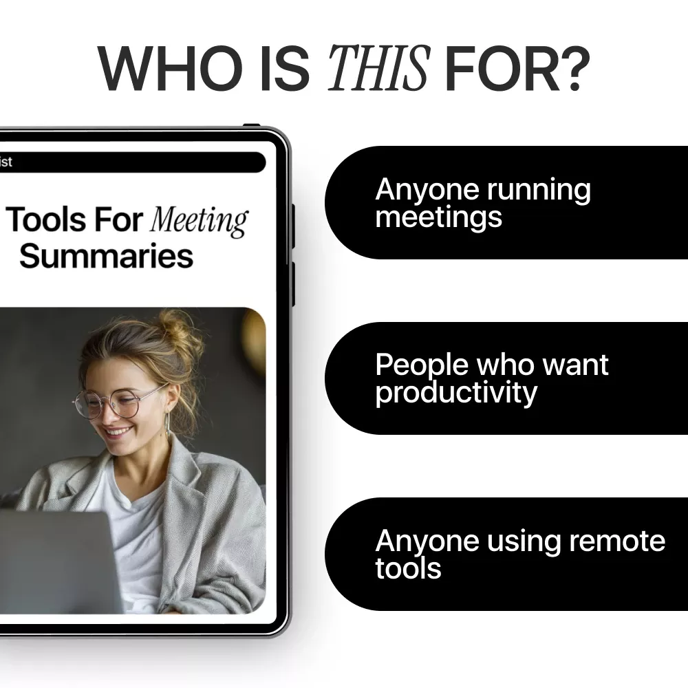 This checklist is perfect for remote teams, managers, founders, freelancers, project leads, and anyone who attends frequent meetings and wants better outcomes. If you’re new to ai tools for meeting summaries or already using them but want cleaner, more reliable results, this resource fits seamlessly into your workflow.
