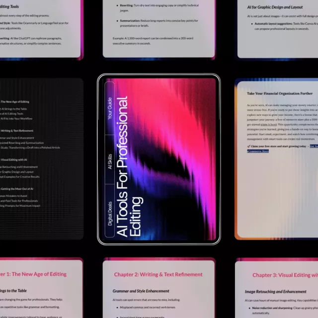 Step into the future of creative work with AI Tools for Professional Editing, a powerful digital guide designed to help modern writers, editors, and visual creators elevate every project with confidence. Whether you’re polishing articles, designing graphics, or streamlining your editing workflow, this guide shows you exactly how to integrate ai tools for professional editing into your daily process for faster, sharper, and more professional results.