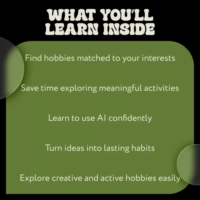 Unlike generic hobby lists, this guide focuses on personalization. It teaches you how to use AI tools to find new hobbies by interest based on your unique preferences, habits, and goals. Instead of guessing what you might like, you’ll learn how to let AI guide you toward hobbies that actually stick.