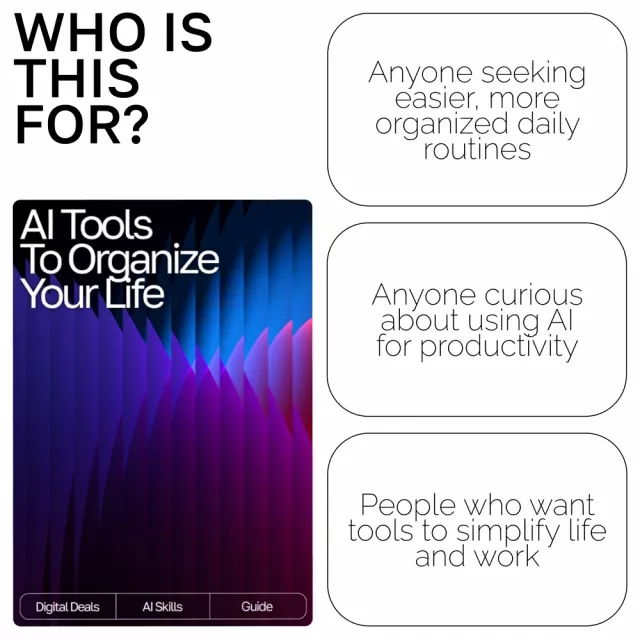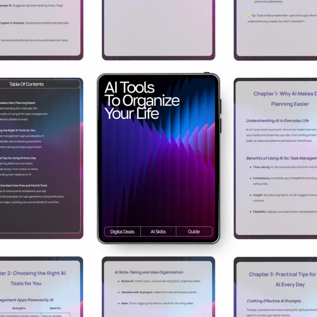 If you’ve ever wished your day could run smoother, clearer, and more intentionally, this guide was created for you. The AI Tools to Organize Your Life digital guide shows you exactly how to use intelligent, everyday technology to simplify planning, boost productivity, and cut through mental clutter. Whether you’re juggling work, home, or creative projects, this resource helps you finally feel in control—with easy strategies and the right ai tools for planning daily tasks.