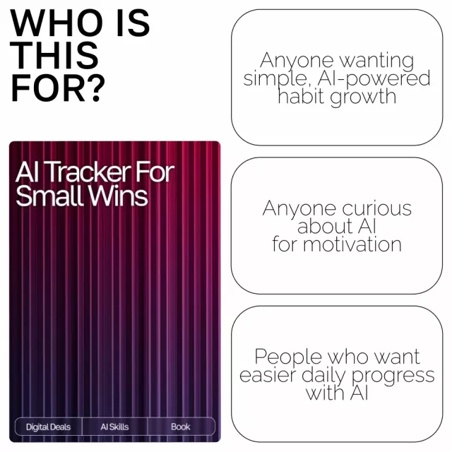This eBook is perfect for anyone who wants to improve productivity, build habits, stay motivated, or integrate AI into their personal growth routine. Whether you’re a student, entrepreneur, creator, or busy professional, the ai tracker for small wins approach keeps progress simple and sustainable.