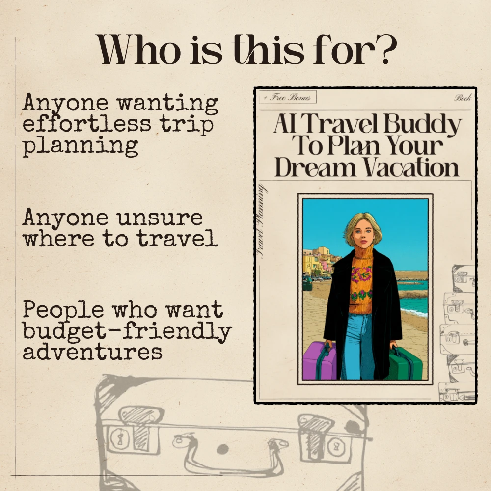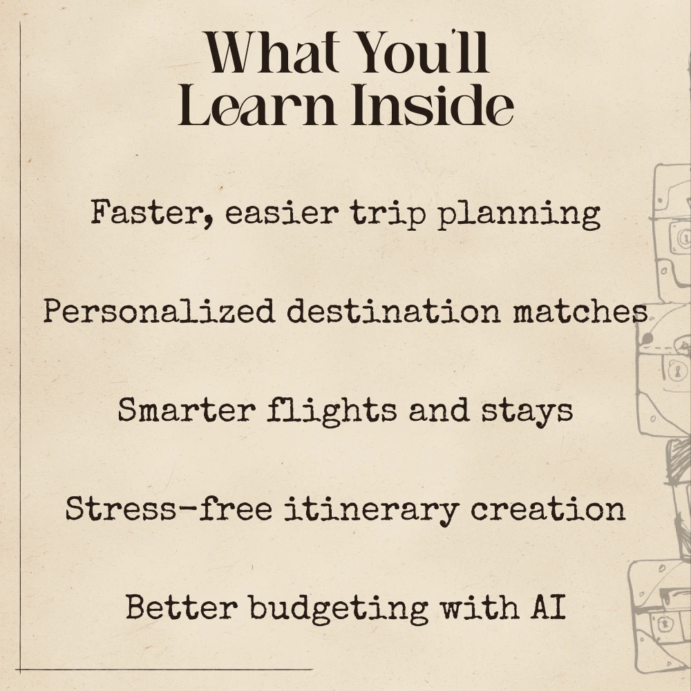 This ebook is perfect for travelers who want smarter planning without the overwhelm: busy professionals, first-time travelers, budget explorers, or anyone curious about leveraging AI to upgrade their travel experience.