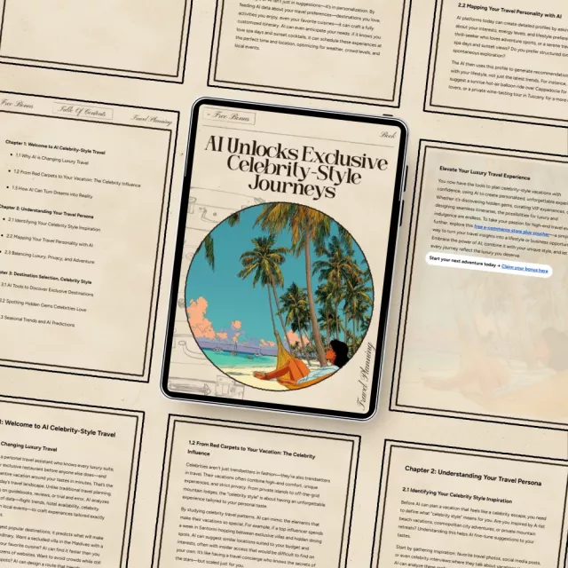 Step into the world of red-carpet luxury with AI Unlocks Exclusive Celebrity-Style Journeys, the ultimate digital eBook designed to help you plan vacations with the same ease and elegance as your favorite stars. Whether you dream of sipping cocktails in Monte Carlo, unwinding in a private Balinese villa, or crafting a VIP itinerary tailored just for you, this guide shows you how to use AI to make it all happen. Smart, simple, and incredibly transformative, this eBook reveals how technology can bring celebrity-level travel within reach.