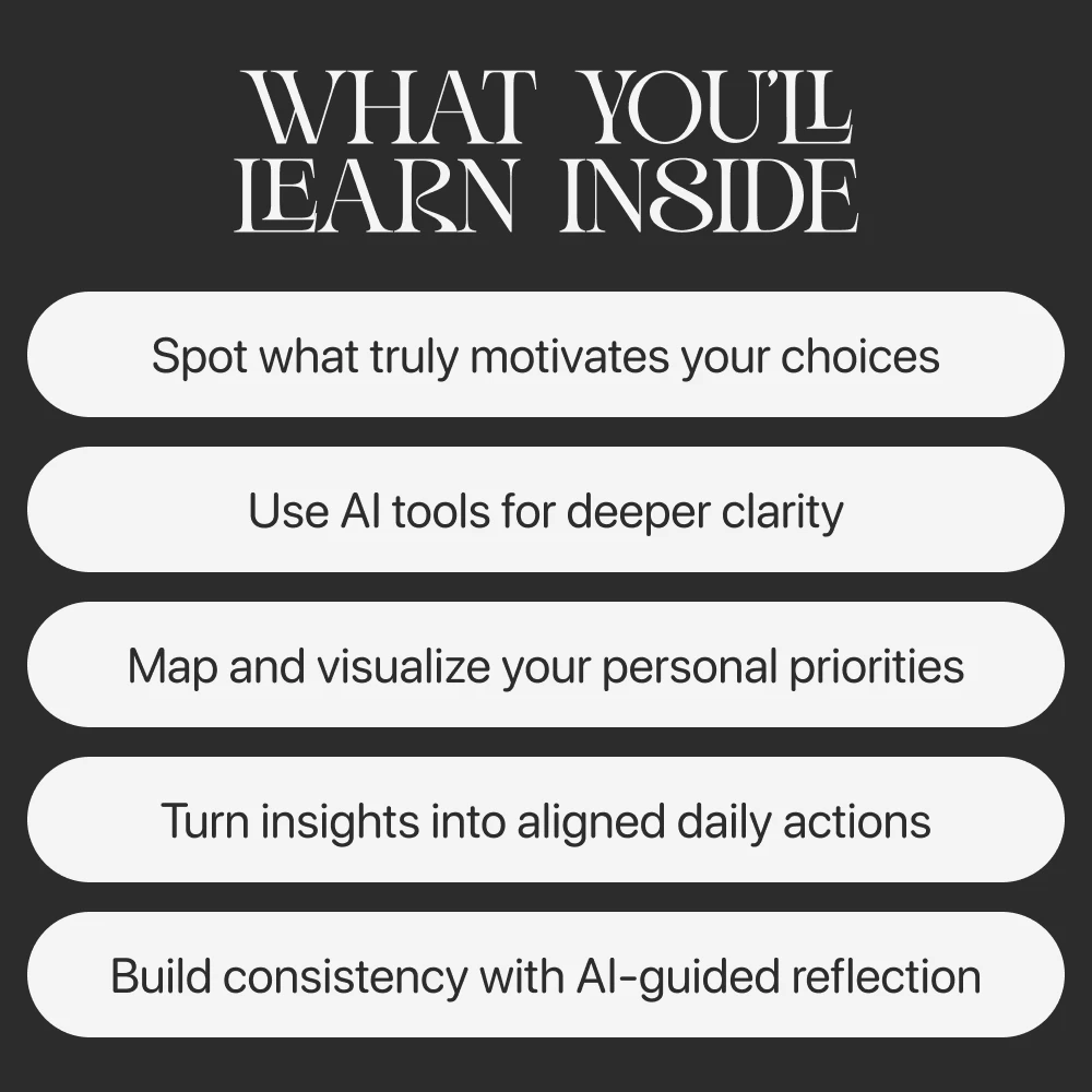 Unlike generic self-help guides, this eBook uniquely blends personal development with cutting-edge technology. It doesn’t just talk about values—it shows you how to use AI to map out personal values and bring them to life with clarity and confidence.