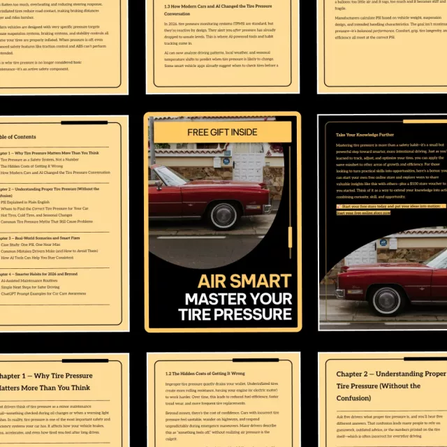Take control of your driving safety and vehicle performance with Air Smart: Master Your Tire Pressure, an easy-to-follow digital guide that shows you how the smallest change in tire pressure can make a life-saving difference. If you’ve ever wondered why your fuel economy suddenly drops, why your tires wear unevenly, or how to confidently manage tire pressure in every season, this downloadable guide makes it simple. With proper tire pressure explained throughout every chapter, you’ll learn smarter habits using real examples, modern tools, and practical steps you can apply today.