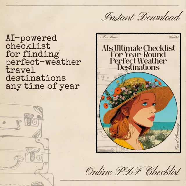 Download AI’s Ultimate Checklist for Year-Round Perfect Weather Destinations today and start using ai to find destinations with good weather year round like a pro. Your sunniest adventures are just a click away—grab your digital download now and start exploring!