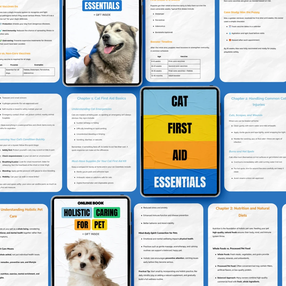 If you want reliable advice without information overload, get this bundle ASAP!! Learned so much about whole-pet wellness approaches from the holistic care eBook.The convenience of downloading once and revisiting anytime is awesome 👍 No need to search the internet endlessly anymore when I have questions about pet careThis isn't just another single-topic download - it combines prevention, behavior insight, emergency awareness into one cohesive collection...exactly what any pet parent needs!Bought this as a gift for a friend who recently adopted a puppy 🐶 She loves how informative yet simple all the guides are!