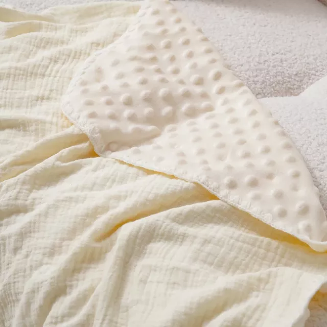 This lightweight yet cozy blanket is thoughtfully crafted to keep your baby warm in the cooler months and comfortably cool during warmer days. Its double-sided design gives you two looks in one, while the breathable crepe weave helps regulate temperature naturally, preventing overheating. Ideal for cuddling, swaddling, stroller rides, nap time, or as a soft surface for tummy time.