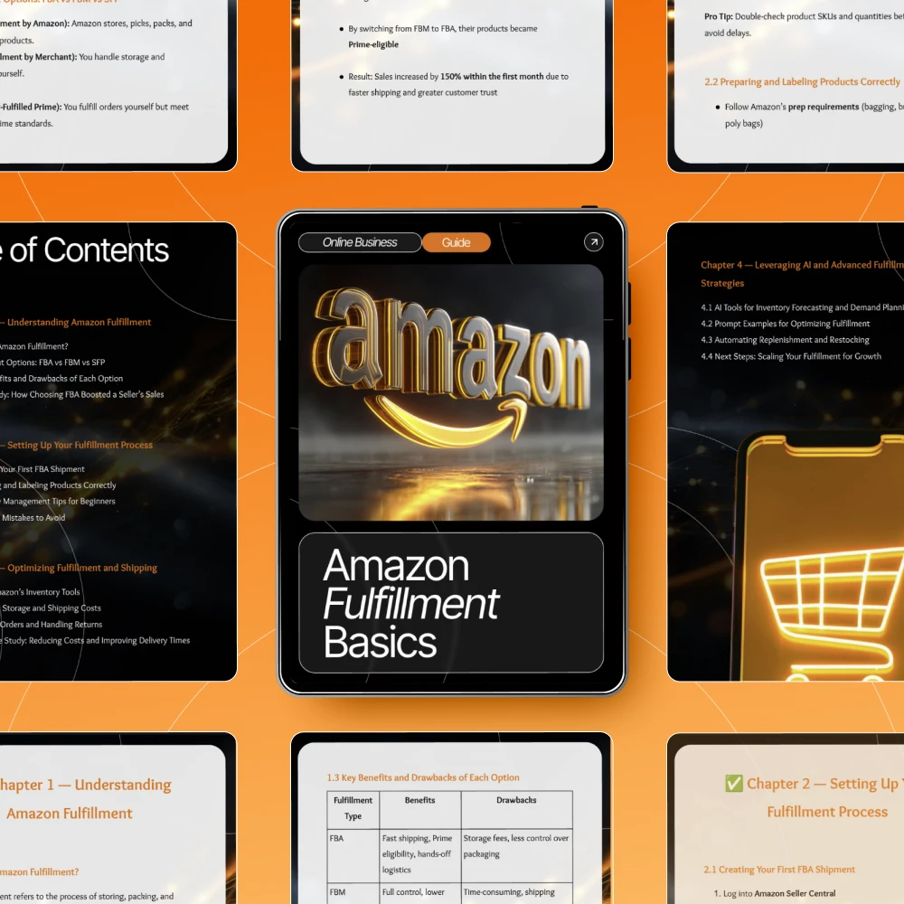 Unlike other generic eBooks, Amazon Fulfillment Basics combines practical instructions, real examples, and AI-driven insights to make learning both easy and effective. It’s written in plain, helpful language — no technical jargon, just straightforward guidance you can act on right away.