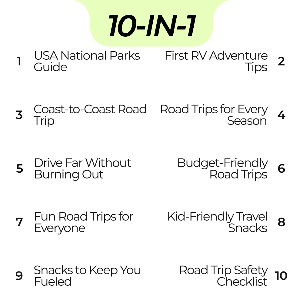 Get ready to hit the open road and explore the natural beauty of the United States like never before. America’s Best Parks for One Incredible Trip is your all-in-one 10-in-1 digital bundle designed to make your USA adventure seamless, fun, and unforgettable. Whether you’re a first-time RV traveler or a seasoned road tripper, this bundle gives you everything you need to plan, pack, and enjoy your journey across the nation’s most breathtaking landscapes. With expert tips, ready-to-go itineraries, and kid-friendly snack ideas, you’ll have the ultimate guide to your next epic adventure.