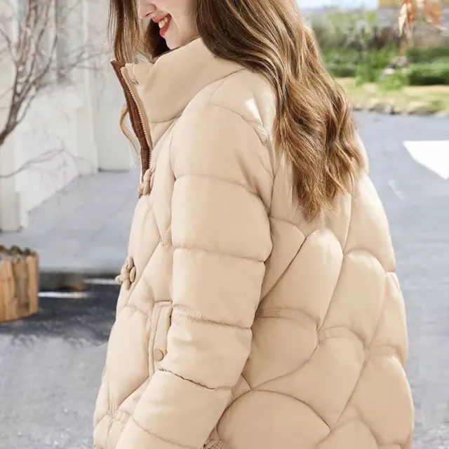What truly sets this parka apart is its blend of traditional style with modern office fashion. The turtleneck gives extra warmth without needing a scarf, while the minimalist solid design keeps it versatile. The apricot color is soft and flattering on many skin tones, making it a timeless winter essential you will reach for again and again.