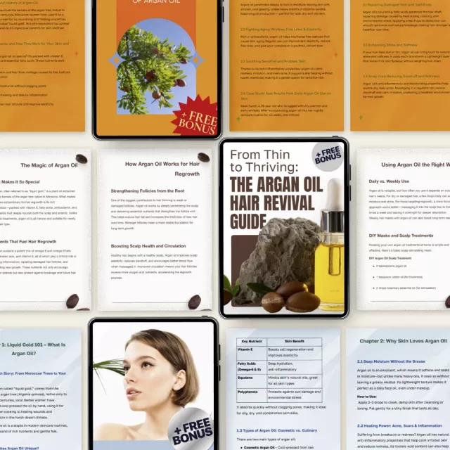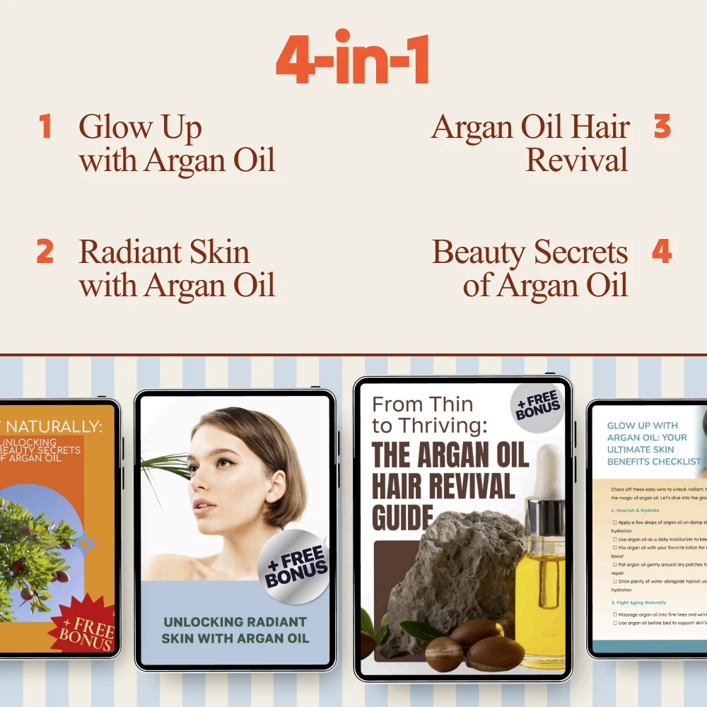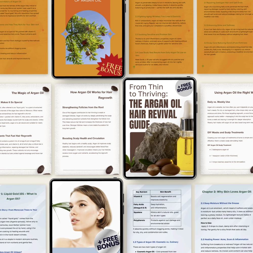 Discover the timeless glow of nature’s most luxurious oil with the Argan Oil Beauty Rituals Pack, a beautifully curated 4-in-1 digital bundle designed to transform your skin and hair care routine. This collection brings together expert-backed insights, easy-to-follow rituals, and practical tools that help you harness real argan oil beauty benefits—without overwhelm. Whether you’re starting fresh or refining your beauty rituals, this pack gives you clarity, confidence, and results you can see and feel.