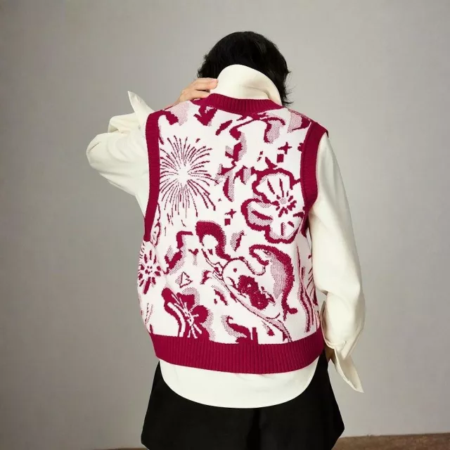Elevate your winter wardrobe with this creative, comfortable, and versatile knit vest. Add it to your collection today and enjoy a perfect blend of fashion, comfort, and playful design.