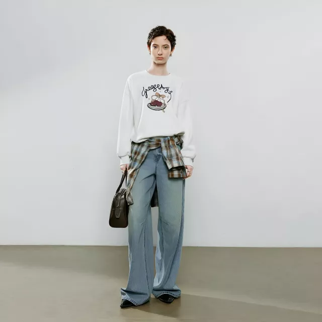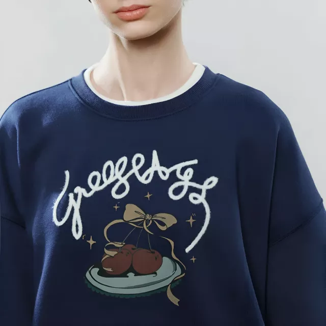 What sets this sweatshirt apart is its asymmetric design and artistic cherry print. Instead of a basic, plain hoodie, you get a fashion-forward top that feels fresh and expressive. The subtle letter embroidery adds texture and detail, giving it a premium look that works just as well in the office as it does for casual evenings out.
