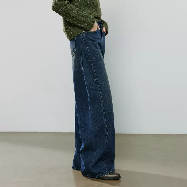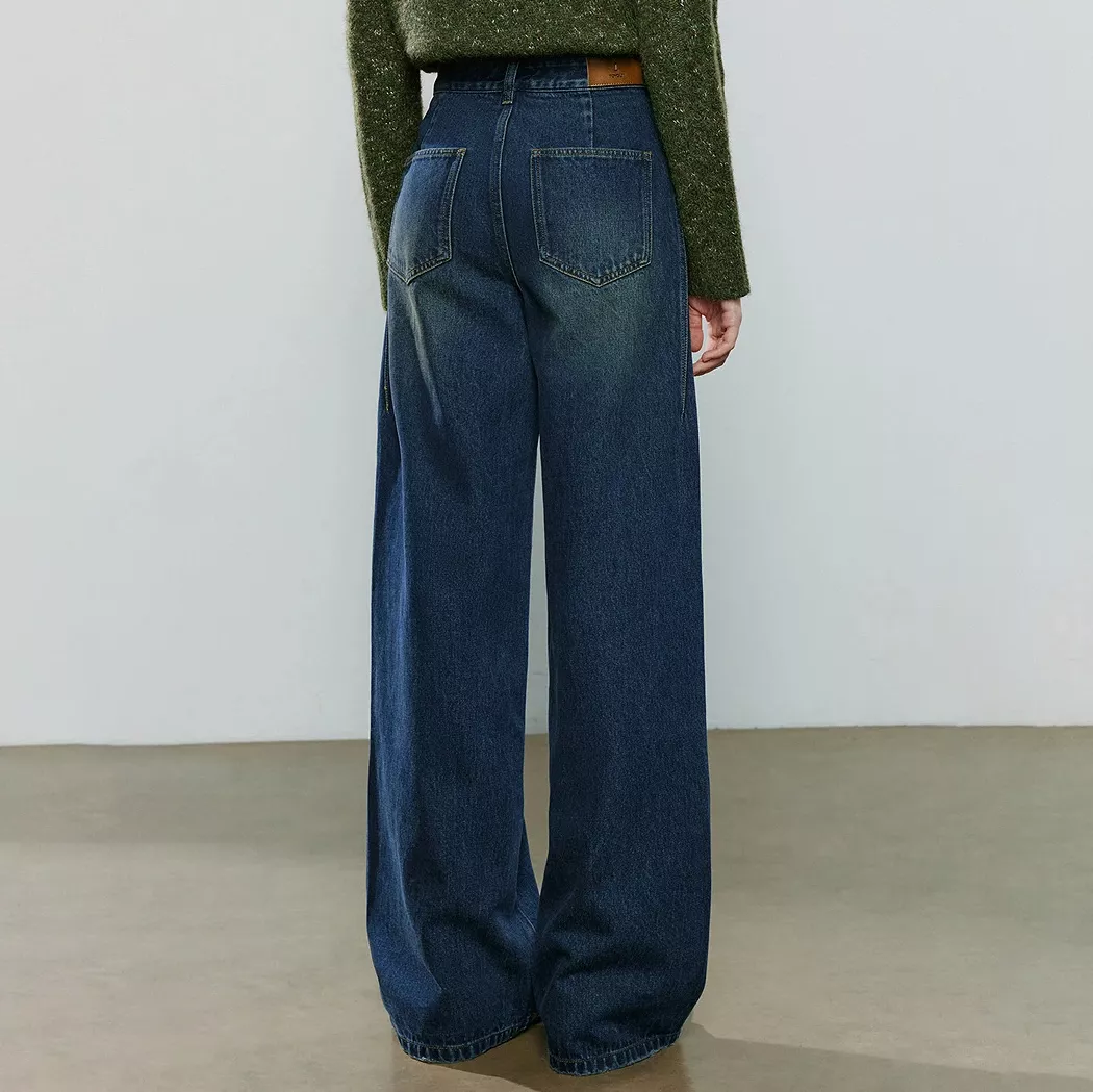 What truly sets these pants apart is the 3D asymmetric deconstructed design. It adds visual interest and a sense of movement that standard pants simply don’t have. The wide-leg cut creates a flattering vertical line, helping to visually elongate the legs. The garment-washed denim gives a soft, lived-in feel while still maintaining a structured shape around the waist and hips.