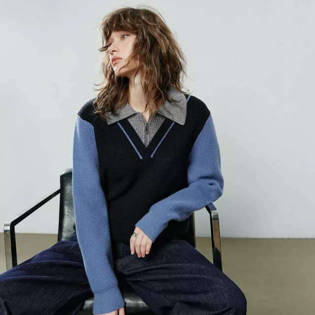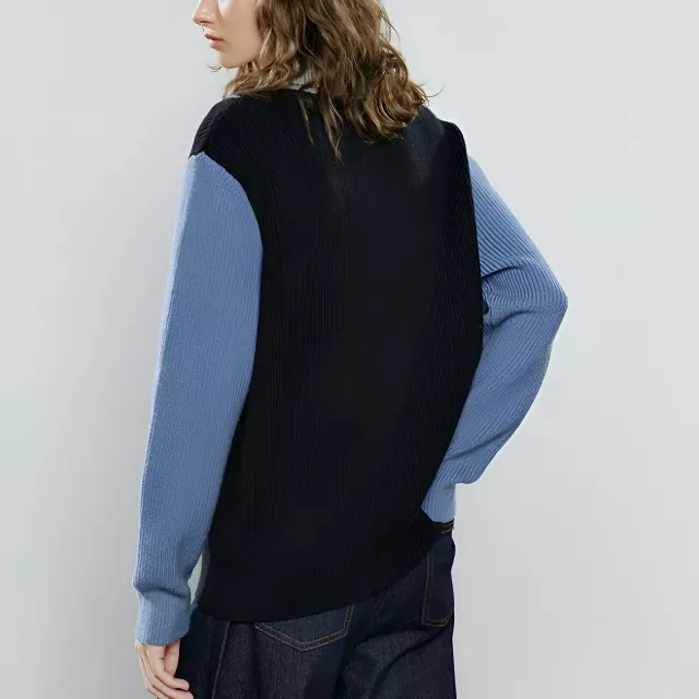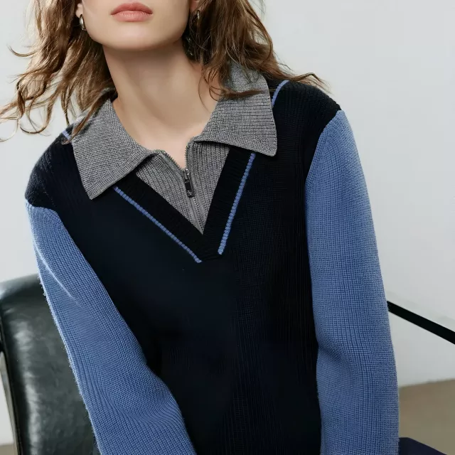 Whether you’re heading to the office, meeting friends, or enjoying a weekend outing, this sweater is versatile enough to suit every occasion. Its loose, relaxed fit ensures comfort, while the long sleeves and high-stretch fabric provide warmth and freedom of movement. The pullover style with a turn-down collar adds a classic touch, while the spliced patchwork design and asymmetric cut make it stand out in any crowd.