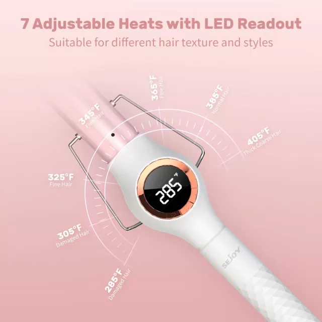 The intuitive LCD display and adjustable temperature range from 212°F to 446°F allow you to customize heat settings to your hair type, giving you the control you need for perfect curls every time. The default temperature of 356°F is ideal for quick styling, while the 360° swivel cord ensures easy maneuverability without tangling. Designed for worldwide use with dual voltage (110-240V), you can take this styling tool anywhere for flawless hair on the go.