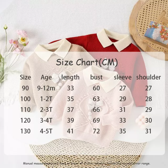Make fall extra special with this adorable knitted pullover designed just for girls aged 9 months to 5 years. Featuring a sweet bow detail and a timeless Peter Pan collar, this sweater brings a classic touch to your child’s wardrobe. Its playful yet polished look makes it a favorite choice for both everyday wear and memorable holiday photos.