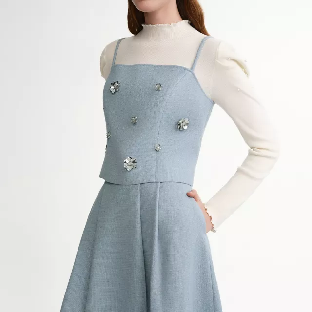 What makes this two-piece set truly special is its balance of comfort and glamour. The shimmering camisole catches the light in just the right way, while the smooth mid-calf skirt creates a clean, elongated look. Whether you’re heading to a romantic dinner, celebrating with friends, or attending a stylish event, this outfit helps you feel confident and beautifully dressed. Pair it with heels, a soft wrap, or simple accessories to complete your signature evening look.