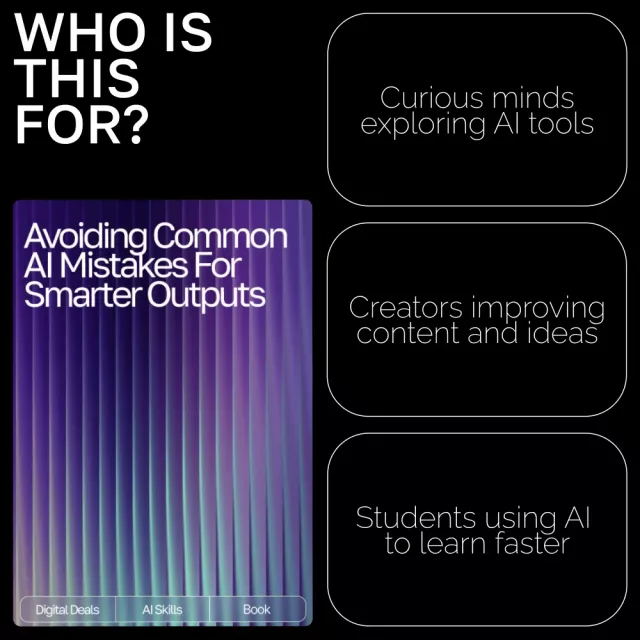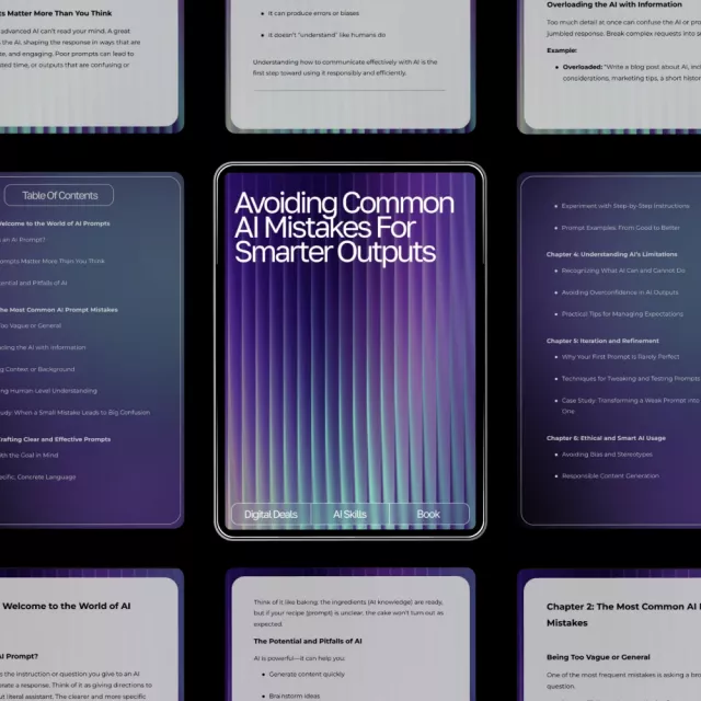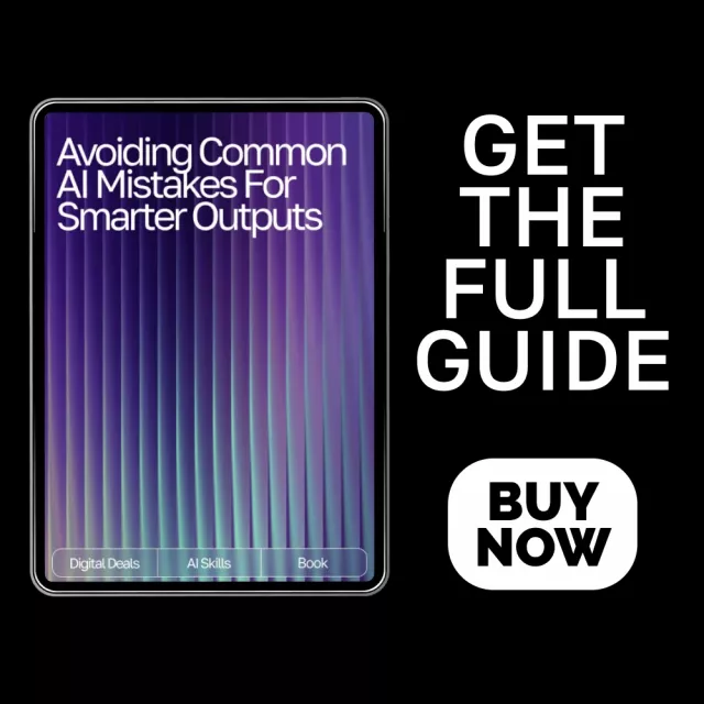 This eBook is perfect for anyone using AI for writing, learning, research, or business. If you’re new to AI or simply want to improve your results, Avoiding Common AI Mistakes for Smarter Outputs gives you the foundation to understand ai prompt mistakes to avoid and the tools to create smarter, more consistent outcomes.