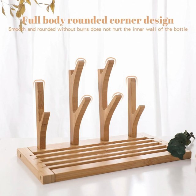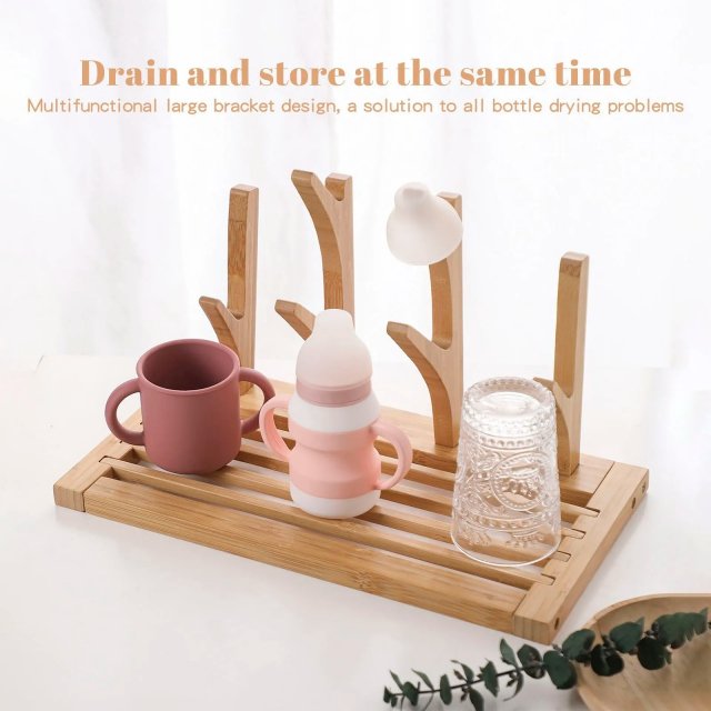 Say goodbye to cluttered countertops and wet baby bottles with this Baby Bottle Drying Rack. Made from high-quality natural bamboo and wood, this stylish and functional rack is perfect for drying bottles, nipples, and sippy cups while keeping them neatly organized. Its innovative three-dimensional design ensures effective drying without taking up much space, making it an essential addition to any kitchen or nursery.
