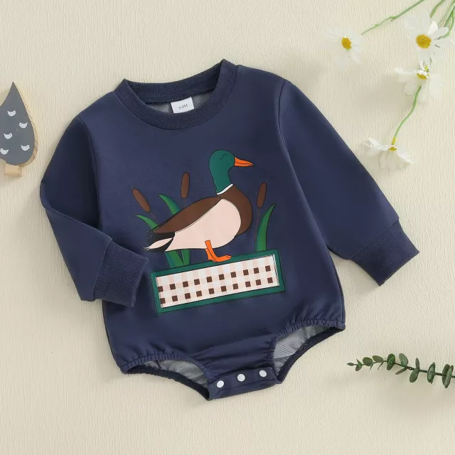 Baby Boy Fall Romper with Cute Duck Print, Long Sleeve Jumpsuit
