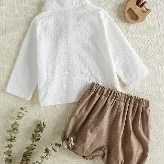 Baby Boy Formal Outfit – Long Sleeve Shirt & Shorts Set for First Birthday