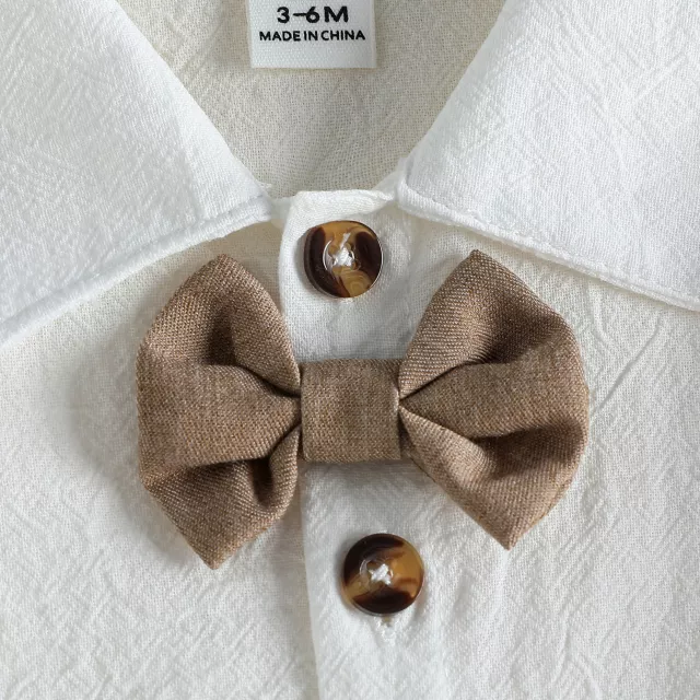 The set includes a soft, breathable cotton shirt with a refined turn-down collar and single-breasted closure, offering both comfort and elegance. The shorts are tailored for a perfect fit, allowing your baby boy to move freely while looking sharp. The knit jersey fabric feels gentle on delicate skin, making it ideal for long wear during special occasions.