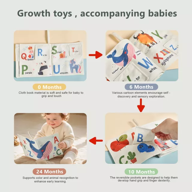 Perfect for tummy time, bedtime stories, or quiet play sessions, this cloth book transforms any moment into a learning opportunity. It’s also an excellent companion for preschool preparation and early reading confidence.