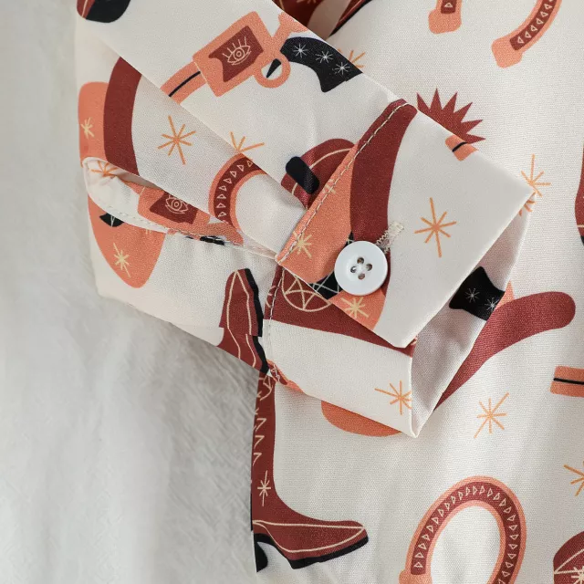 Dress your baby in comfort and style with this charming Western Ethnic Print Romper. Designed for both boys and girls from newborn to 1 year, this long-sleeve bodysuit combines playful charm with everyday practicality. Crafted from soft, breathable polyester, it’s gentle on your baby’s skin while durable enough for daily wear. The lapel button-up collar adds a touch of sophistication, while the matching hat completes the adorable look. Whether it’s playtime, a family outing, or a special occasion, your little one will look picture-perfect in this all-season outfit.