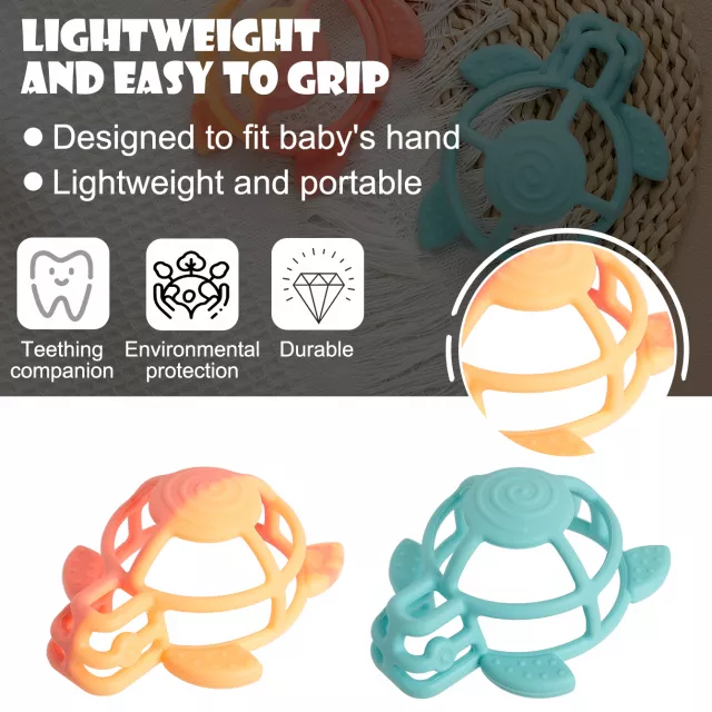 Crafted with your baby’s safety in mind, this teething toy is completely free from harmful chemicals. The lightweight silicone is soft yet durable, giving babies just the right amount of resistance to chew on without hurting their sensitive gums. The turtle shape is easy for tiny hands to grasp, promoting early motor skill development and independence while soothing discomfort naturally.