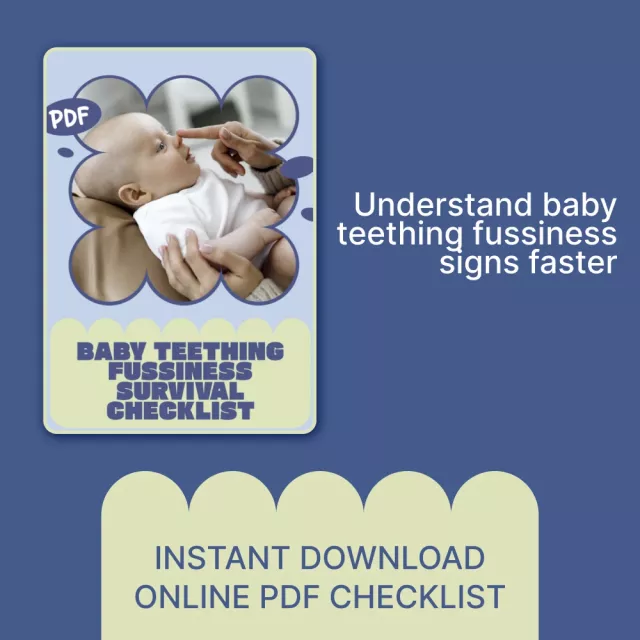 This thoughtfully designed checklist highlights the most common baby teething fussiness signs in a quick, stress-free format. Instead of overwhelming you with explanations, it walks you through key behaviors to watch for—helping you connect the dots between fussiness and teething in seconds.