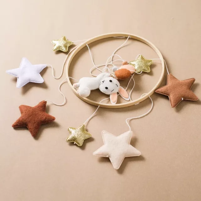 Baby Wooden Crib Mobile with Soft Felt Rabbit & Star Rattles – Montessori Toy