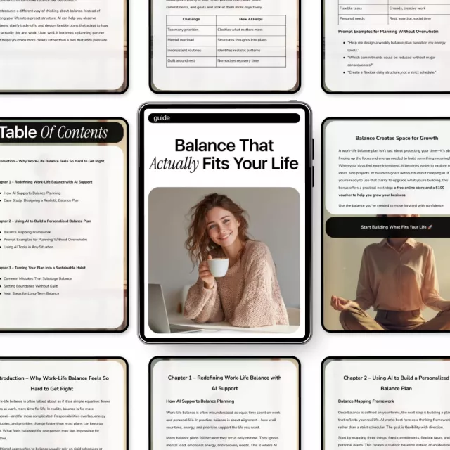 If you have ever felt like traditional work-life balance advice does not fit your actual life, this guide was created for you. Balance That Actually Fits Your Life is a practical, supportive digital guide designed to help you build a balance plan that adapts to your responsibilities, energy, and priorities. Instead of rigid rules, this guide shows you how to use ai for creating a work-life balance plan that evolves with you. It is realistic, flexible, and focused on progress, not perfection.