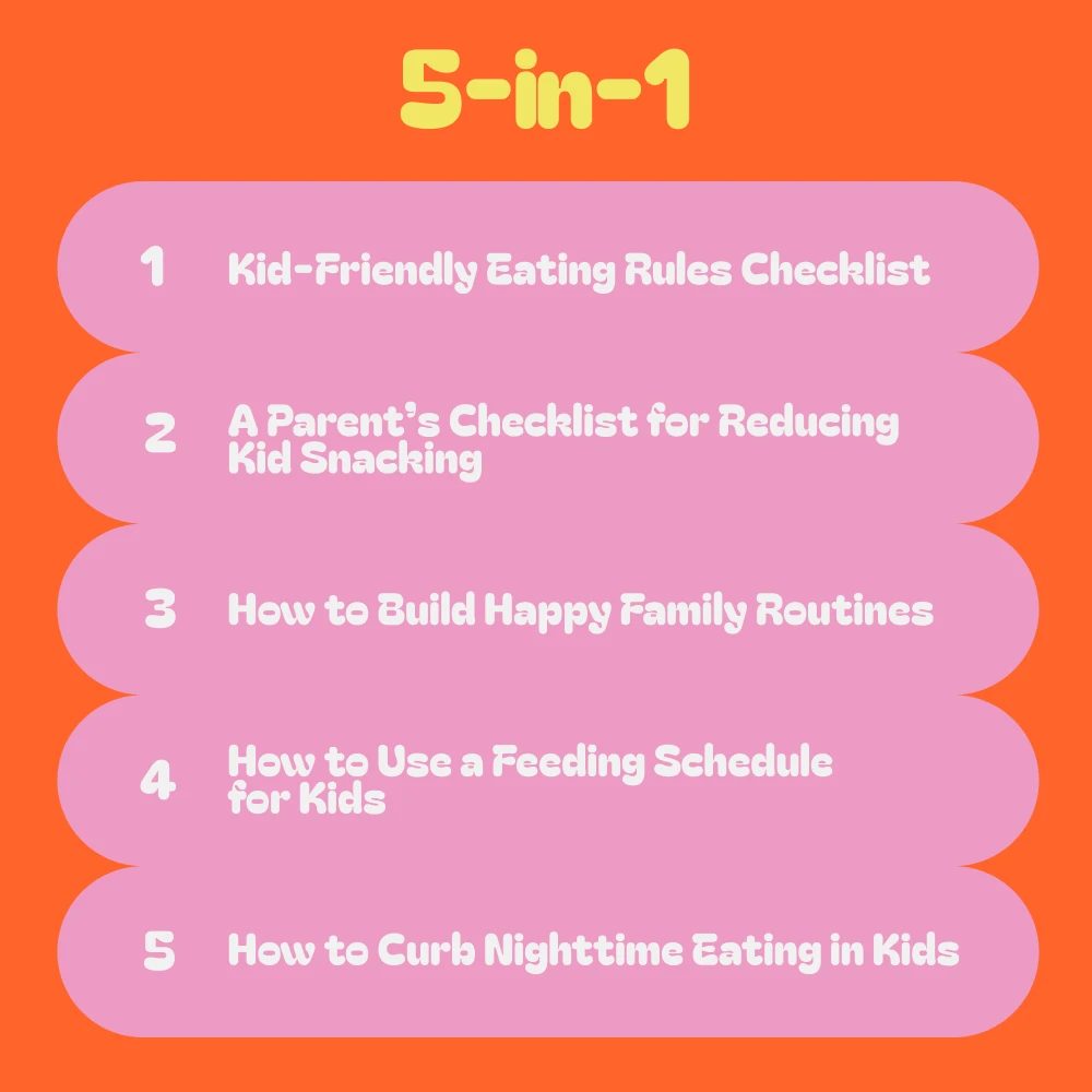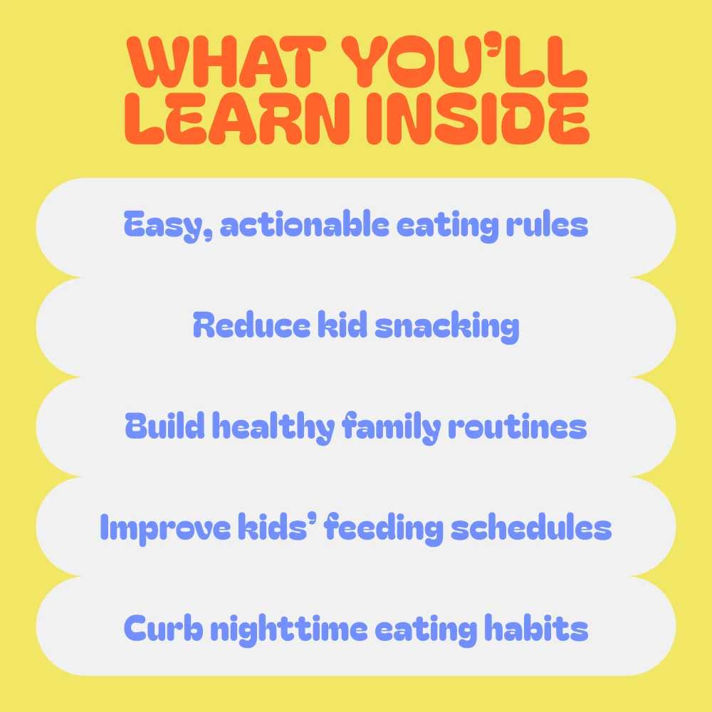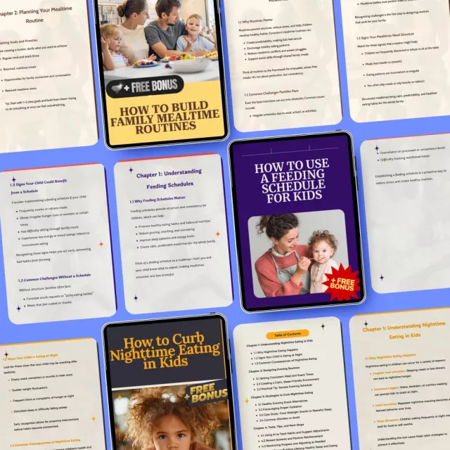 Inside this helpful bundle, you’ll find a collection of easy-to-follow guides, eBooks, and checklists, each carefully crafted to support you in setting and maintaining rules around eating for your kids. Each resource is designed to help you build a positive, lasting approach to food and mealtime routines.