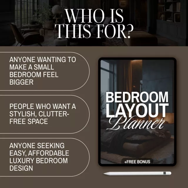 Discover how to turn even the coziest bedroom into a refined, stylish sanctuary with the Bedroom Layout Planner Guide. This expertly crafted digital download gives you step-by-step guidance on designing a functional yet luxurious small bedroom. Whether you’re struggling with limited space, awkward layouts, or simply want to add more elegance, this eBook will help you create a polished look that feels spacious and sophisticated.