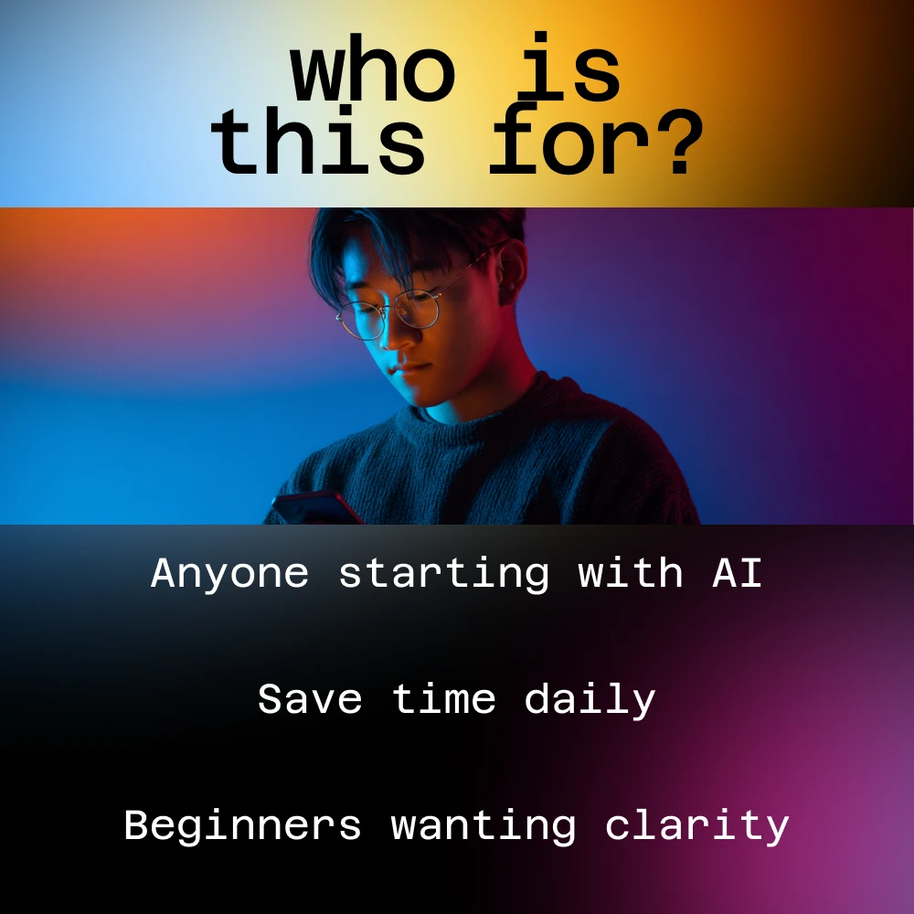 This bundle is perfect for beginners, non-tech users, creatives, freelancers, small business owners, and anyone curious about AI but unsure where to start. If you’ve ever felt overwhelmed by AI jargon or unsure how to use tools effectively, this bundle was made for you.