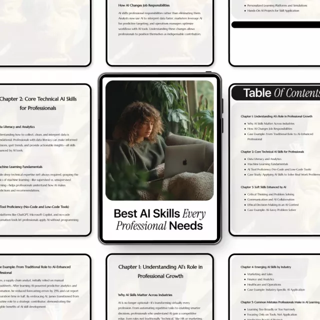 Unlike other digital resources, Best AI Skills Every Professional Needs combines both technical and soft skills with industry-specific insights and practical case studies. It’s not just about learning AI tools—it’s about applying them effectively to solve real work problems and accelerate your professional development.