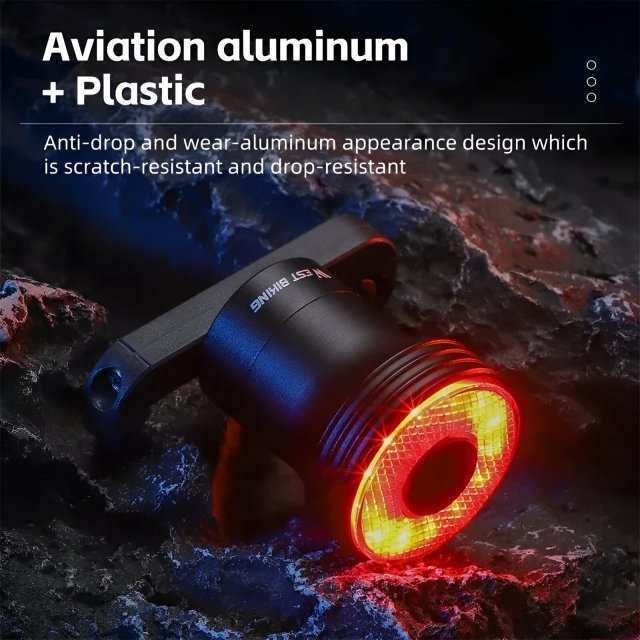 What sets this brake tail light apart is its intelligent start-stop functionality. The light automatically detects movement, turning on when you start riding and off when stationary. This feature, combined with the vibrant 15 lighting modes, adds a touch of personalization to your bike while prioritizing safety. The durable aluminum alloy construction and waterproof design ensure this light performs flawlessly in all weather conditions.