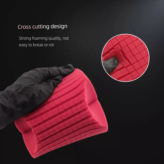 Made from high-quality, durable sponge material, this wash sponge is built to last. Measuring 9.3 in. x 6.1 in. x 2.8 in., it offers the perfect size for covering more surface area while staying easy to handle. The double-sided cross-cut design gently lifts and locks away dirt particles, keeping your car’s paint safe from scratches. A smart indentation in the center ensures a firm, slip-free grip, making your cleaning routine smoother and faster.
