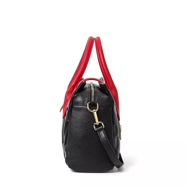 Turn heads wherever you go with this stunning black and red leather tote. Crafted from premium genuine leather and lined with soft polyester, this handbag is more than just an accessory — it’s a style statement. The bold color block design, paired with elegant alphabet embossing, gives it a modern, artistic flair while keeping it timeless and versatile. Its casual tote shape makes it perfect for both daily wear and special occasions.